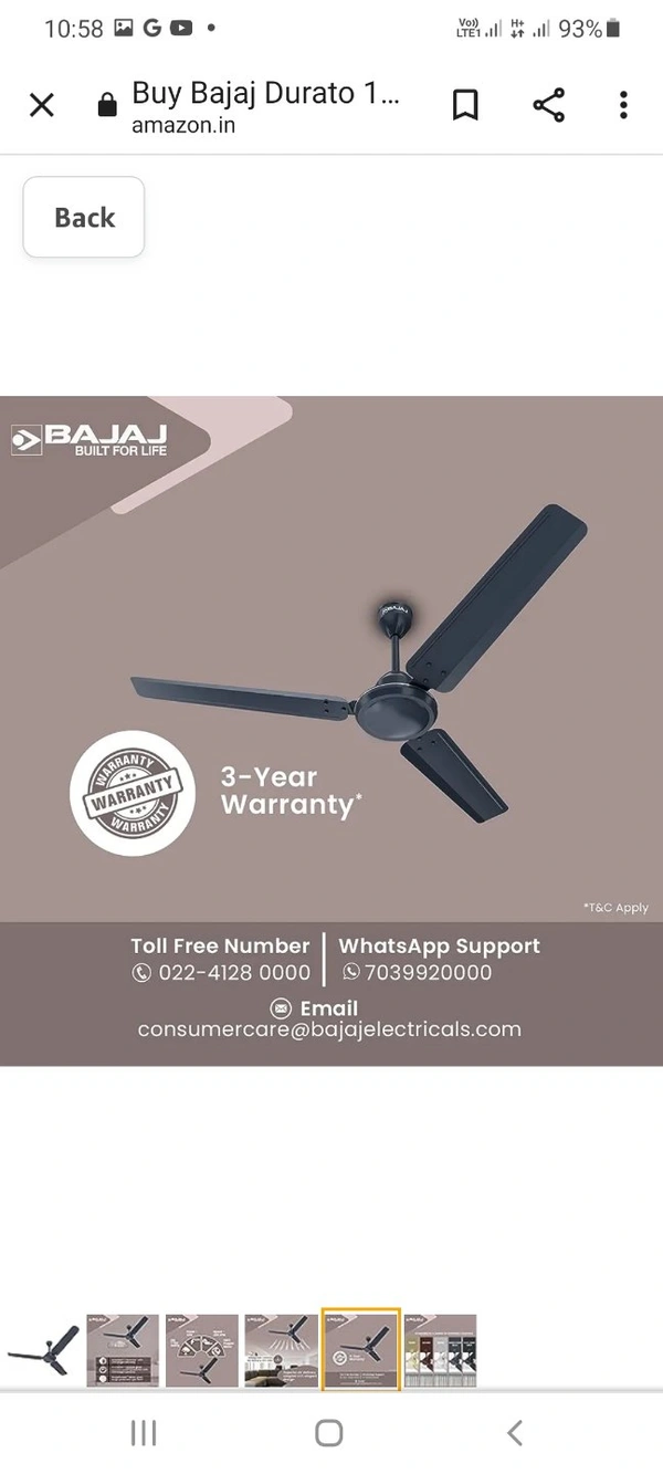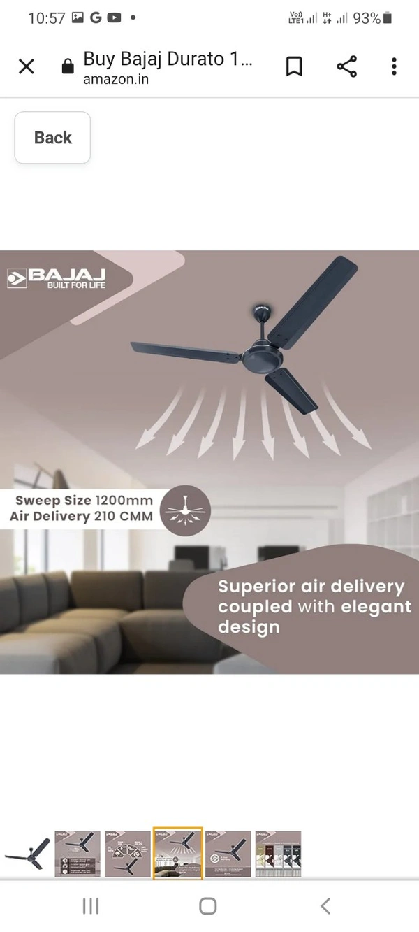 BAJAJ DURATO 12S1 1200MM COAL MINE GREY 3 YEARS WARRANTY