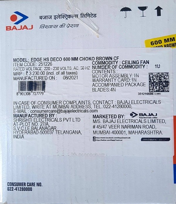 BAJAJ EDGE HS DECO CHOKO BROWN RUST FREE 600MM