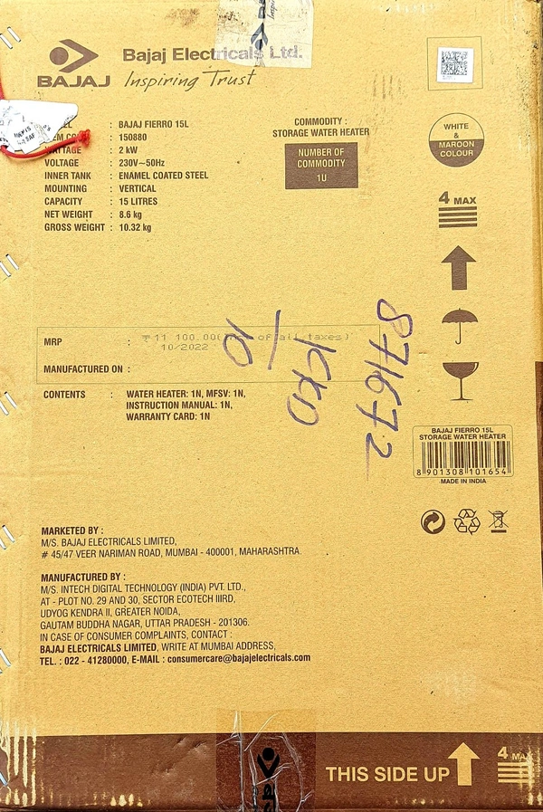BAJAJ FIERRO 15LT STORAGE WATER GLEASER 5 STAR