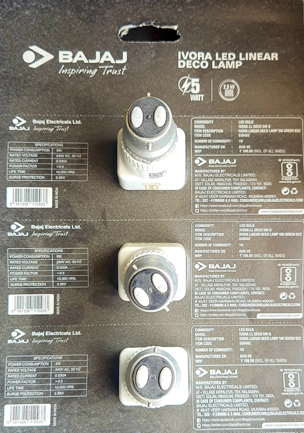 BAJAJ IVORA 5W LED LINER DECO LAMP RED EACH PIECE B22D