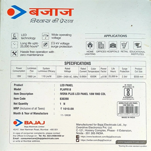 BAJAJ IVORA PLUS 18W ROUND CDL DOWNLIGHT CDL