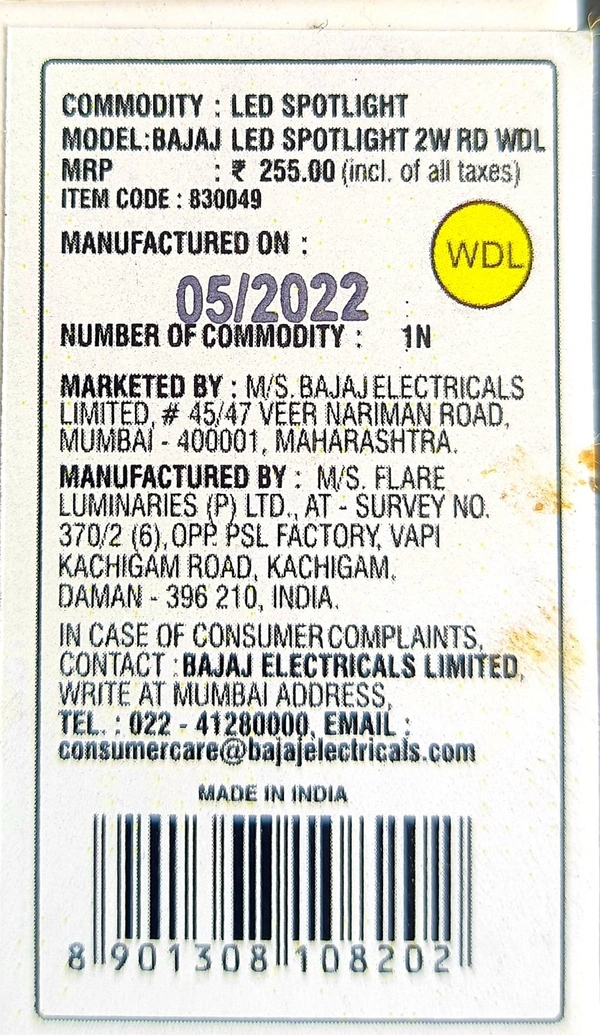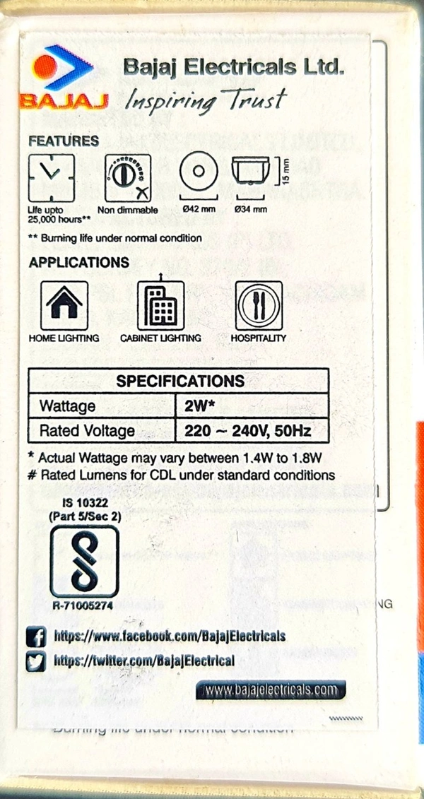 BAJAJ LED 2W WHITE SPOTLIGHT