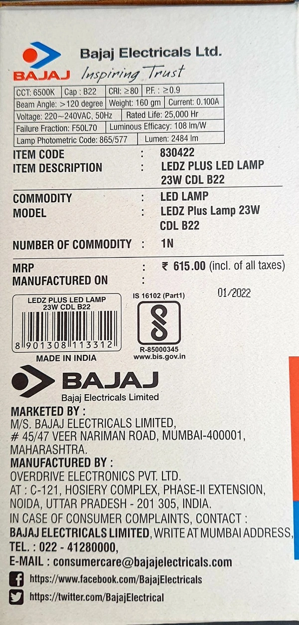 BAJAJ LEDZ PLUS 23W BULB CDL B22D