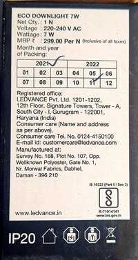 LEDVANCE 7W ECO LED DOWNLIGHT 6500k
