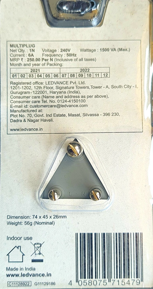 LEDVANCE MUTIPLUG 6A 3 PIN