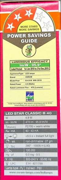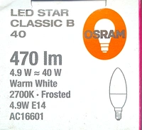 OSRAM LED STAR CLASSIC B 40 4.9W 2700K E14