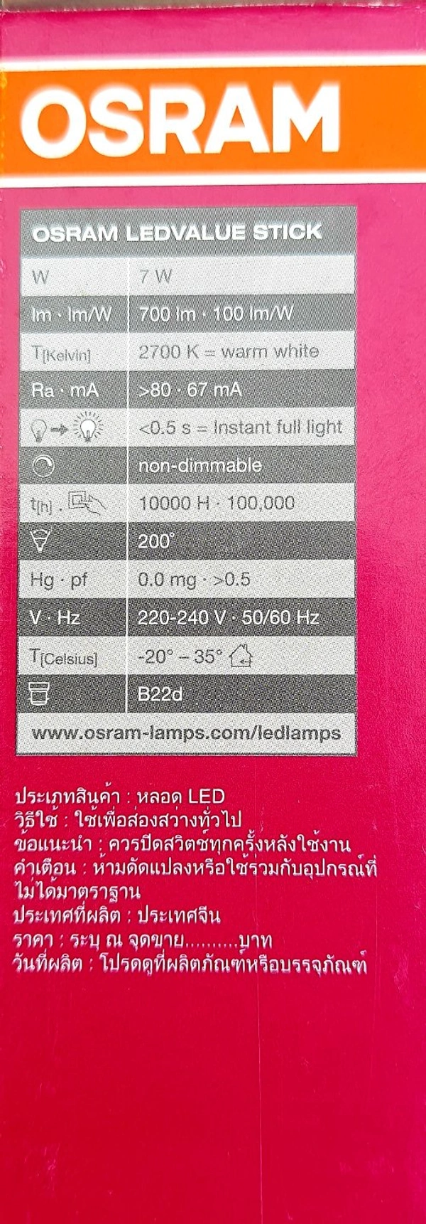 OSRAM LED VALUE STICK 7W 6500K B22D