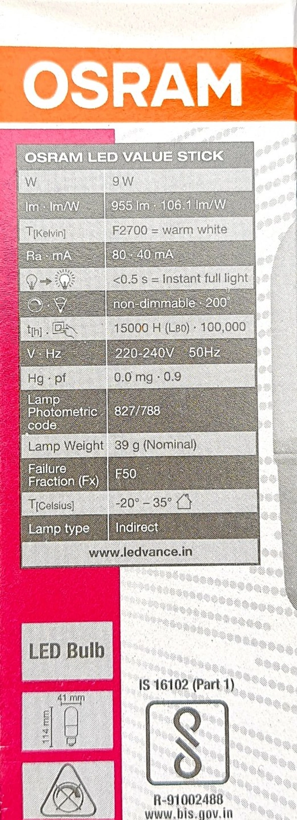OSRAM LED VALUE STICK 9W/2700K E27