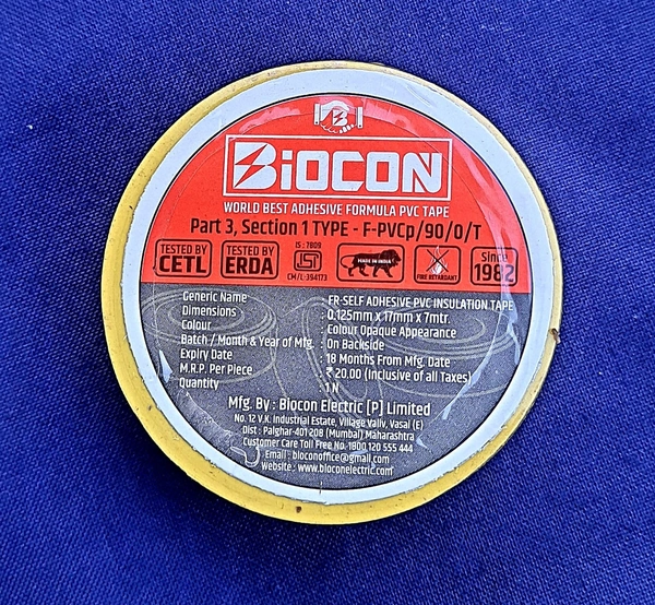 PVC TAPE ROLE BIOCON 7 METERS R Y BLC BLUE