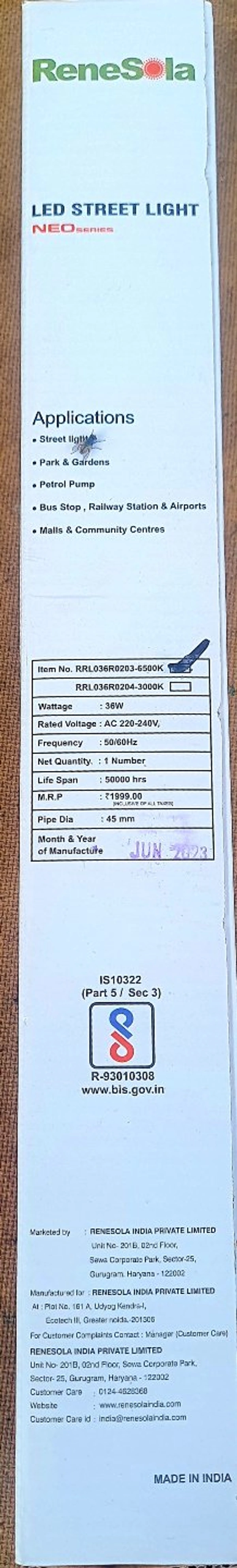 Renesola NEO 36w Led Street Light 6500K