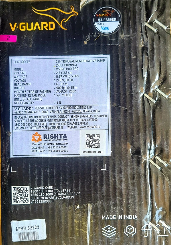 V GUARD 0.5 HP MONOBLOCK MOTOR BEAD BODY