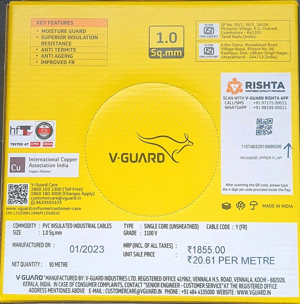 V GUARD 1 SQMM PVC WIRE 90 METERS