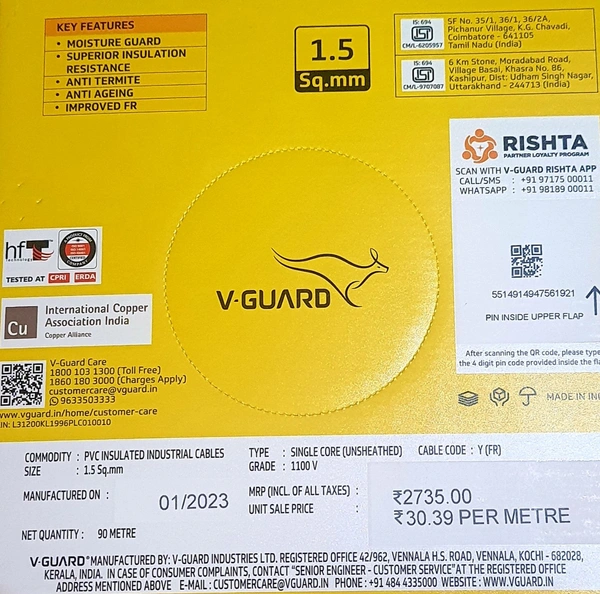 V GUARD 1.5 SQ MM WIRE 90 METERS