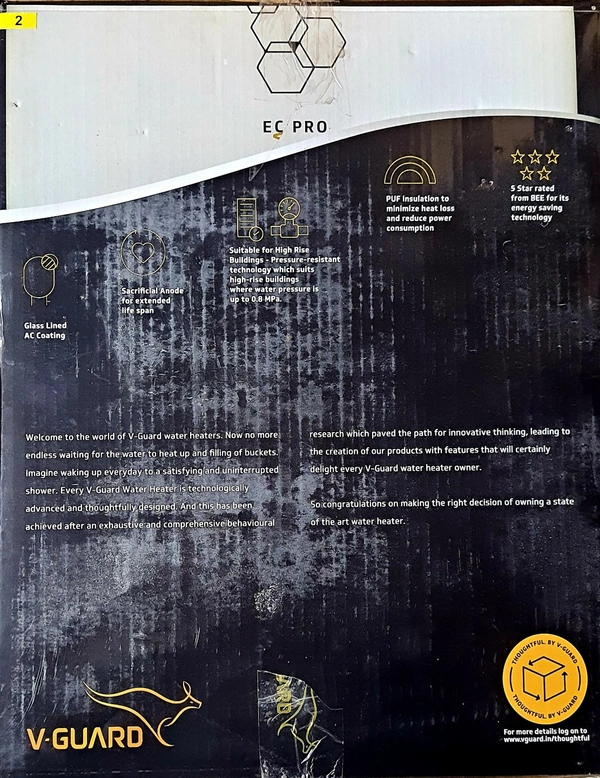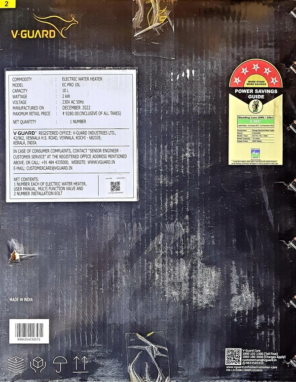 V GUARD EC PRO 10LT STORAGE WATER HEATER INSTULATION FREE WITH PIPES