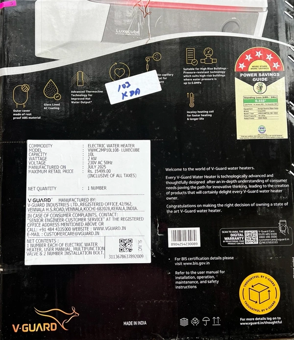 V GUARD LUXECUBE 10LT STORAGE WATER HEATER 2 KW