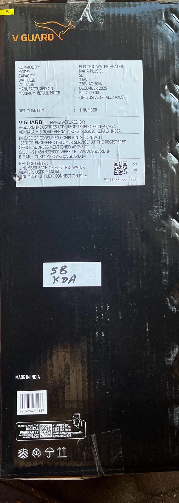 V GUARD MAHA PLUS 5L INSTANT ELECTRIC WATER HEATER 3KW 230V WITH FREE INASTALATION AND PIPES.